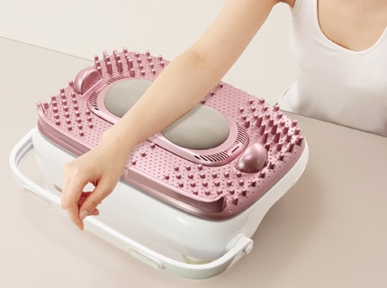 突起の高さや大きさを変えた波動板が、足のウラ・ふくらはぎなど あらゆる部分にフィットして波動マッサージ