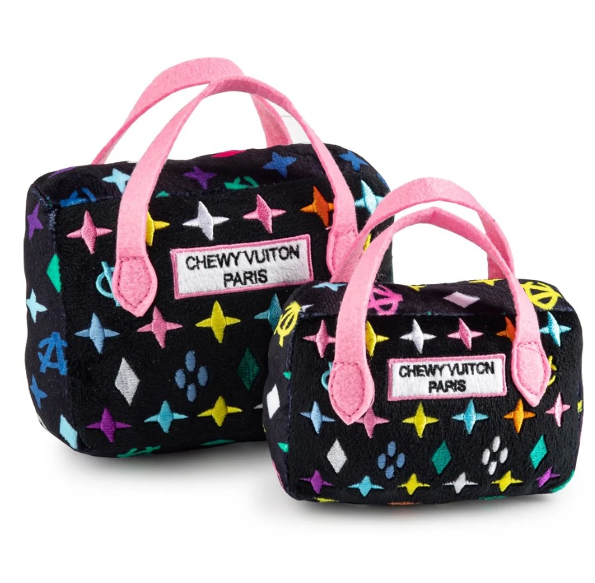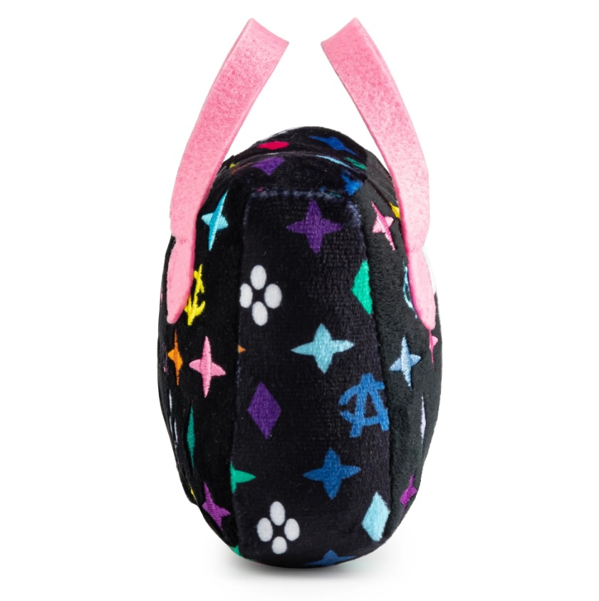 ファッションの永遠の定番であるブラックのモノグラムが印象的なバッグ型のドッグトイ。 押さえたり噛んだりするとピッと音がします。 S:高さ/約12.5cm L:高さ/約16.5cm